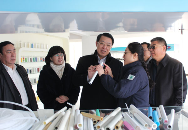 2016年2月17日,高區(qū)黨工委書(shū)記、管委會(huì)主任劉偉來(lái)聯(lián)橋新材走訪調(diào)研。高區(qū)領(lǐng)導(dǎo)王剛、傅華濤和區(qū)工委辦公室、經(jīng)發(fā)局、商務(wù)局、建設(shè)局等部門(mén)負(fù)責(zé)人陪同參加。