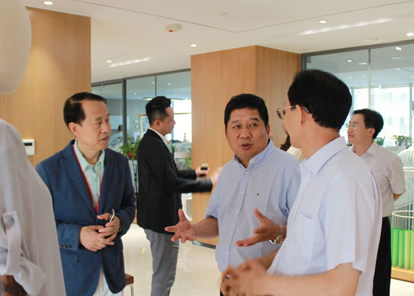 慕镕鍵董事長陪同張耀平一行參觀了聯橋集團總部,并對公司的發展情況進行了介紹。張耀平對聯橋集團多年以來穩扎穩打、穩健發展表示肯定,對聯橋集團以“感恩 責任”為核心價值觀的文化體系,建設幸福企業、誠信立企的理念表示贊賞。慕镕鍵董事長感謝農業銀行多年以來的信任和支持,希望雙方可以進一步加強合作,實現全面互利共贏。