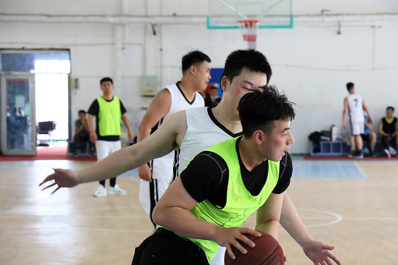 跳球、爭搶、長傳、快攻,率先出戰的紡織服裝隊憑借快速的反映和默契的配合拿下首分;集團總部隊也毫不示弱,以一記三分予以回應。隨著比賽的不斷進行,雙方比分交替上升,你方投籃精準,我方防守積極,雙方球員你爭我奪、互拼互搶,都把自己最好的狀態呈現在球場上,盡情揮灑運動激情。人力資源隊和貿易新材隊的比賽也異常激烈,抄截、妙傳、蓋帽、跳投、花式運球、超遠距離投籃不斷,給場下觀眾們帶來了一場激情澎湃的視覺盛宴。