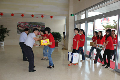 2012年9月27日下午,聯(lián)橋集團(tuán)愛(ài)心媽媽志愿者團(tuán)隊(duì)在集團(tuán)黨委副書(shū)記宋威麗的帶領(lǐng)下,前往威海兒童福利院,給孩子們送去150箱愛(ài)心水果和一些生活用品,送去了節(jié)日的問(wèn)候和深切的關(guān)愛(ài)。威海市兒童福利院江海剛院長(zhǎng)熱情接待了志愿者們。